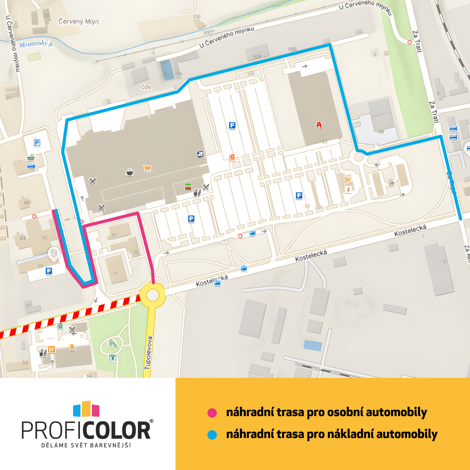 Do 23.11. probíhá rekonstrukce ulice Kostelecká v Praze Čakovicích. Naše prodejna má otevřeno, ale je nutné počítat s objízdnou trasou kolem supermarketu Globus. Děkujeme za pochopení.